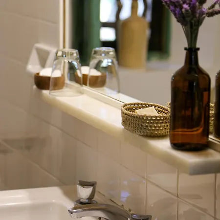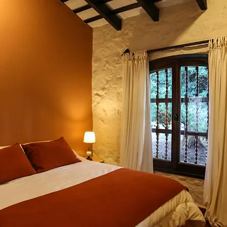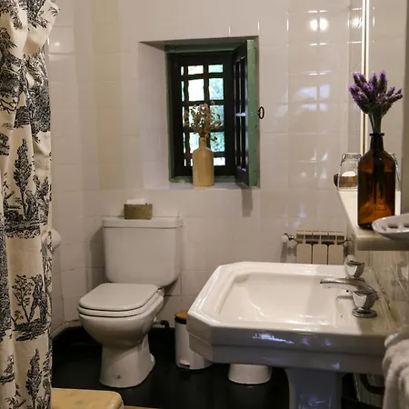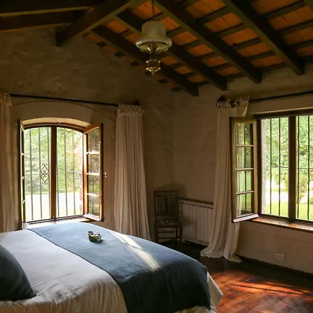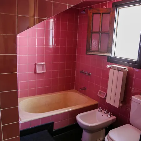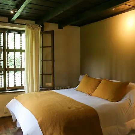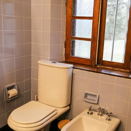 The windows of La Baguala, Refugio Serrano open onto the garden. The accommodation offers a bidet, a separate toilet, and a bath, as well as comfort amenities such as a hair dryer and bath sheets.